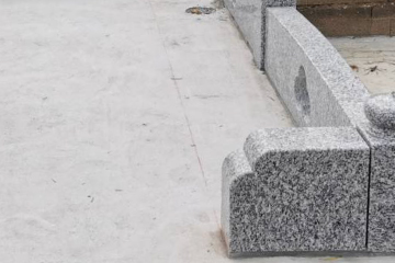 カロートの上部に墓石を設置します。その他、墓地のサイドには玉砂利の敷設を行います。もうすぐ完成です。