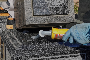 彫刻を施した竿石と台石を組み立てなおします。この際、墓石専用接着剤で接合部を接着して耐震補強を行います。