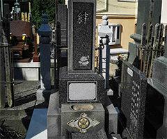 竿石の表面に新たな石板を埋め込み、そのうえに「絆」の文字と蓮の花の彫刻を施しました。